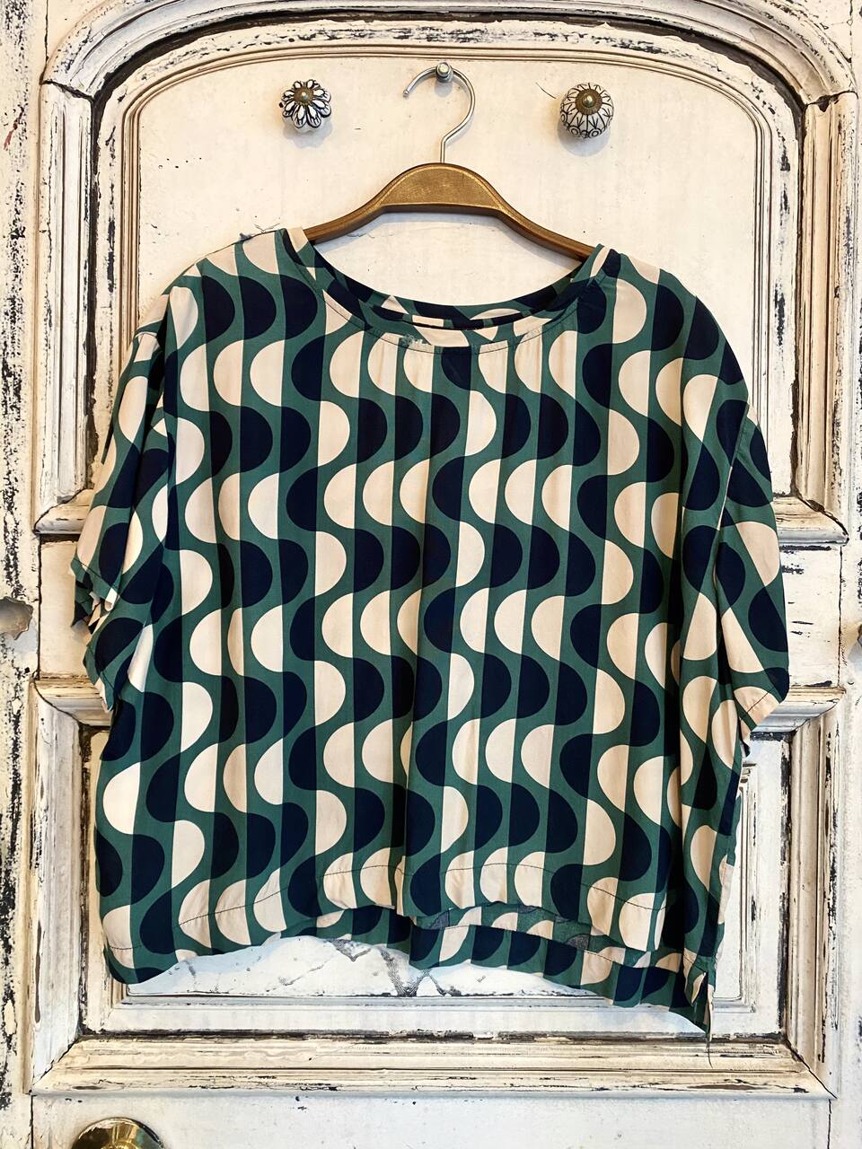 Blusa formas geometricas, marca Totem, cor verde/preta/bege