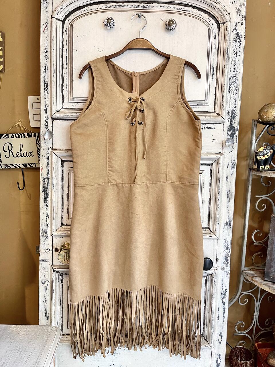 Vestido Curto Camurça com Franjas, cor Nude
