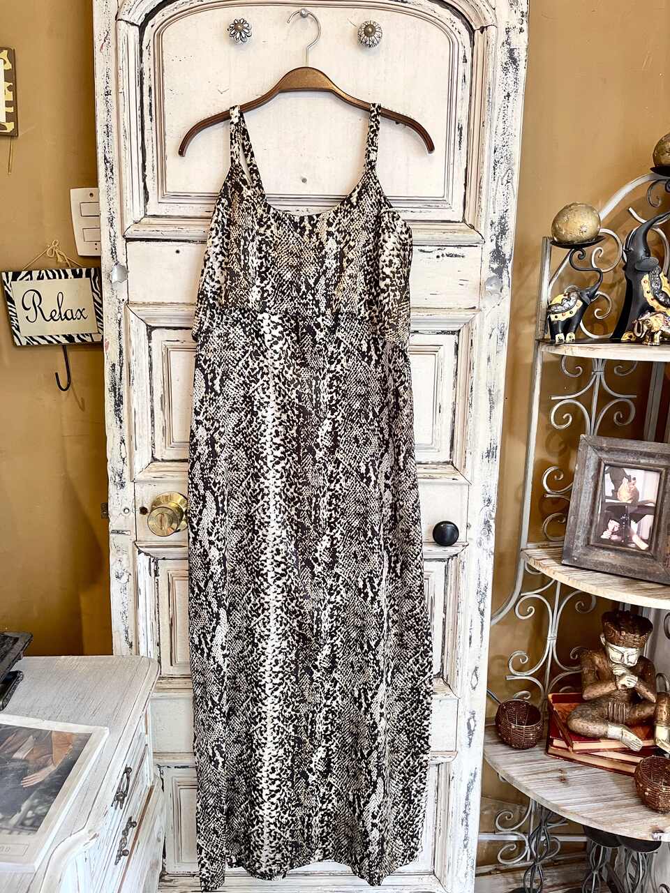 Vestido longo estampa cobra com fendas laterais, marca Raizz